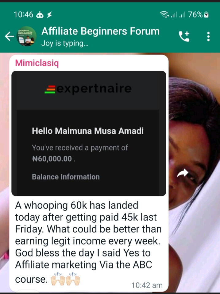 Google when people search about your product.The Price of Affiliate beginners course (ABC) is #30,000 Only.